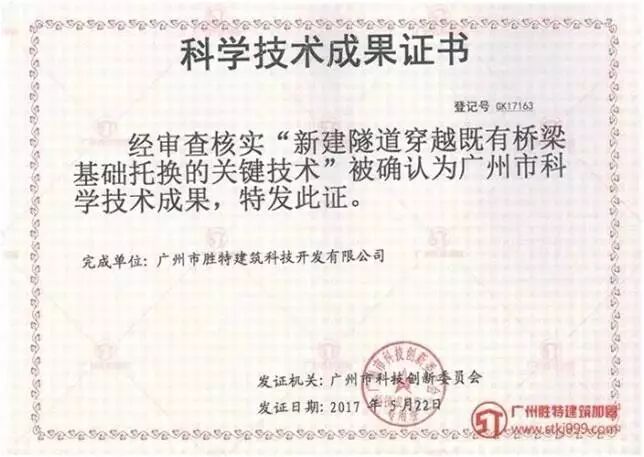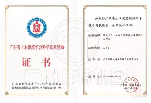 本創(chuàng)新技術(shù)是在傳統(tǒng)錨桿靜壓樁技術(shù)基礎(chǔ)上的巨大突破, 創(chuàng)新點(diǎn)包括: 1. 根據(jù)工程實(shí)際情況因地制宜的組合使用“群錨靜壓樁結(jié)構(gòu)”(專利號ZL201120281350.1)和“建筑物厚板基礎(chǔ)結(jié)構(gòu)豎直樁托換加固封樁孔方法”(專利號ZL200910235342.0)、“樁基加固預(yù)應(yīng)力鎖樁方法” (專利申請?zhí)枺?00710305695)3項(xiàng)新工藝,可以達(dá)到工程設(shè)計的單樁承載力較高這一要求--達(dá)到2500KN,超過了中型壓樁機(jī)(壓樁力≤2400kN)。 2. 室內(nèi)地坪提供的反力荷載隨時隨地可利用。 3. 不受室內(nèi)高度的限制,可在高度2m以下空間施工;施工方便可拆卸移位置,安全可靠、簡單易行。 項(xiàng)目第一完成人是我司董事長兼總工,高級工程師吳如軍。 《勝特特刊》秉承著“增強(qiáng)企業(yè)凝聚力,弘揚(yáng)企業(yè)文化”的宗旨,使其成為勝特人傳承行業(yè)文化、企業(yè)文化、生活文化的有效途徑,把公司的最新動態(tài)展現(xiàn)給廣大友人。 本屆創(chuàng)交會5月26日至27日如期在廣州琶洲國際會展中心舉辦,我司有2項(xiàng)入選參展項(xiàng)目,分別為加固改造、托換糾傾領(lǐng)域綠色技術(shù)與一種地下圓形停車庫(四季快安智能停車場)。 十九年來,公司以科研推動施工技術(shù)進(jìn)步,以施工技術(shù)實(shí)踐轉(zhuǎn)換科技成果,通過不斷的技術(shù)創(chuàng)新,不但具有較強(qiáng)的開發(fā)與設(shè)計能力,更具有較高的現(xiàn)場施工能力。每年完成各種加固與改造、托換與糾傾及邊坡加固等工程二百余項(xiàng),至今已完成三千余項(xiàng)特種工程設(shè)計與施工,攻克了一個又一個的技術(shù)難題。公司本著“優(yōu)勝、特別、務(wù)實(shí)、開拓”的企業(yè)精神,艱苦創(chuàng)業(yè),力求精益求精,做到了人無我有,人有我優(yōu)。 相繼獨(dú)立完成了多項(xiàng)重大加固改造托換工程,業(yè)務(wù)范圍遍及全國各地,取得了很高的知名度與滿意度,樹起了良好的公司品牌形象,將“勝特”打造成中國加固改造行業(yè)的優(yōu)質(zhì)品牌。